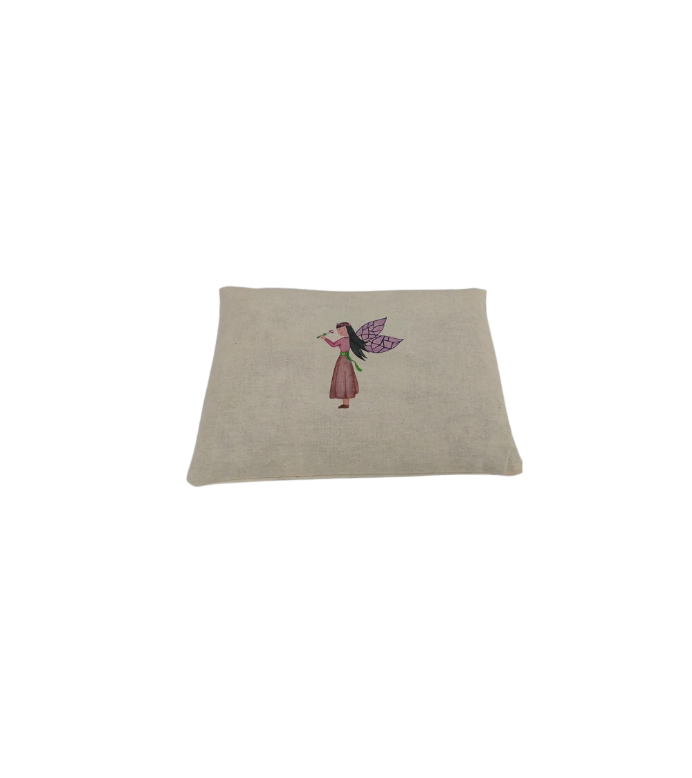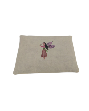 Almohadilla de efecto relajante, confeccionada en tela crea cruda con diseño estampado en tela con tintas vegetales.