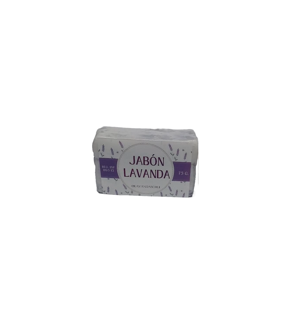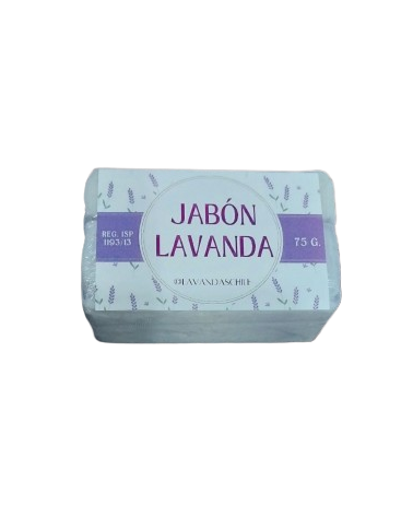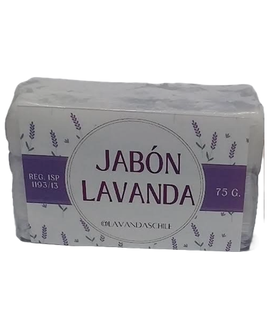 Jabón de lavanda (producto con registro ISP) de 75gramos. Elaborado con manteca de cacao, esencia de lavanda y colorantes naturales.